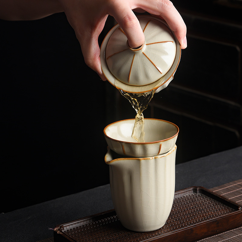 Featuring a smooth glaze and palm-hugging curve, this set enhances the translucent hue of the tea liquor while maintaining ideal serving temperatures. The ergonomic form ensures that every sip remains a warm, visually stunning experience.