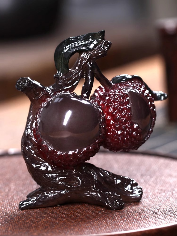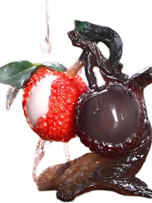 The main body is crafted from resin or ceramic material, featuring a surface finished with a faux lychee texture and color-changing glaze technique: at room temperature, it exhibits a deep purple/reddish-brown hue, which transforms upon contact with heat (such as pouring hot tea) to reveal a more vibrant red color. The design faithfully recreates the fruit and branch details of the lychee tree. Crafted through molded shaping, surface texture treatment, and color-changing glaze coating, it delivers a lifelike texture with strong interactive appeal.